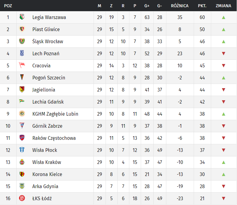 This page shows the detailed table of the pko ekstraklasa in season 20/21 ekstraklasa. Tutaj znajdziesz w przystępnej formie najważniejsze informacje o.