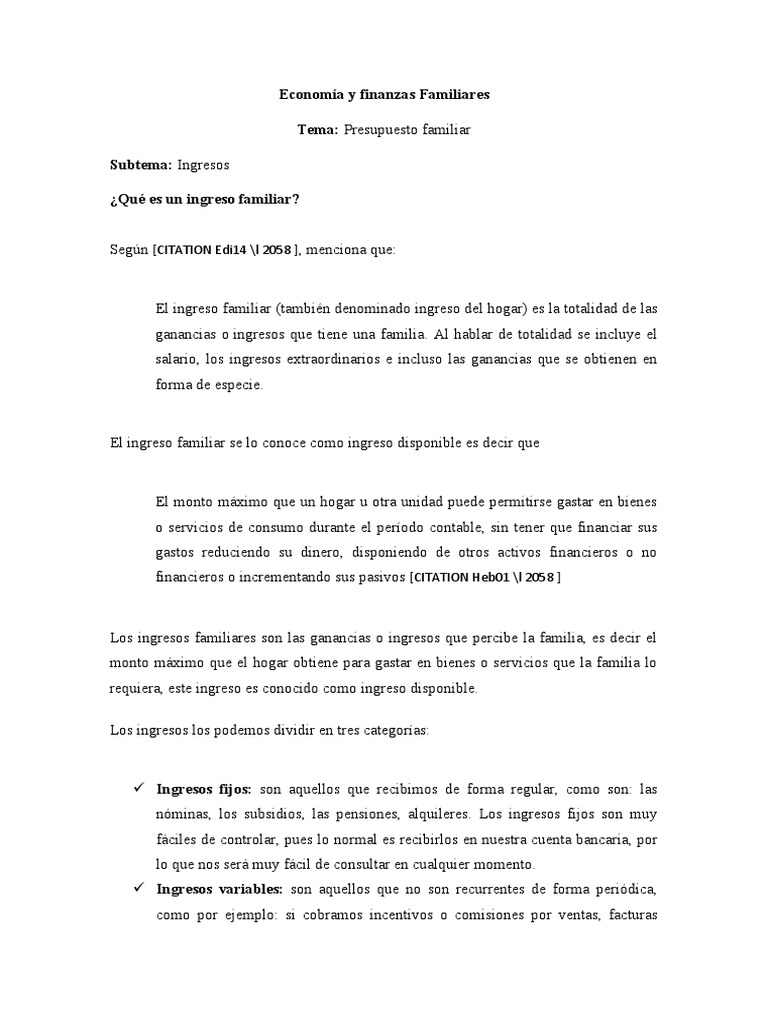 Vamos a poner varios ejemplos de los ingresos y gastos más habituales: ingreso familiar. Ingreso familiar disponible neto ajustado.